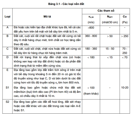 Khi tính toán tải động đất, giá trị tính toán có phụ thuộc vào thông số loại nền đất và hệ kết cấu. Tham khảo...