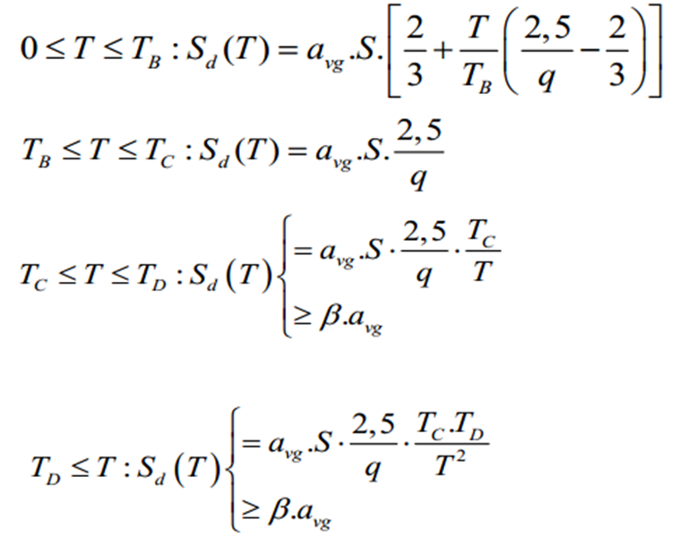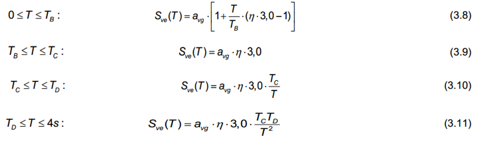 Thành phần thẳng đứng của tác động động đất phải được thể hiện bằng phổ phản ứng đàn hồi, Sve(T), được xác định bằng cách sử dụng các biểu thức từ (3.8) đến (3.11):