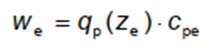 Áp lực gió tác động lên các bề mặt bên ngoài, we được xác định như sau: