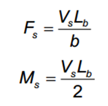 Lực cắt trong một bản giằng Fs và mô men uốn một bản giằng Ms được xác định theo các công thức: