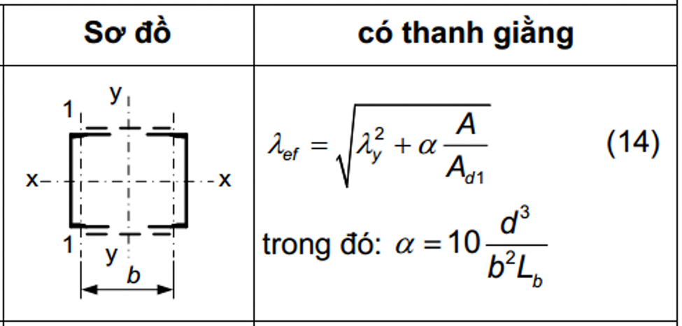 Khi tính toán cột tiết diện rỗng 2 nhánh có liên kết thanh giằng, chúng ta kiểm tra các điều kiện sau: