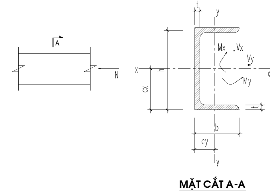 Thư viện kết cấu gửi tới các bạn bài tính toán dầm thép C chịu nén uốn theo TCVN 5575:2024.
