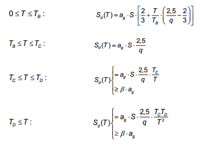 Với các thành phần nằm ngang của tác động động đất, phổ phản ứng đàn hồi Sd(T) được xác định bằng các công thức sau